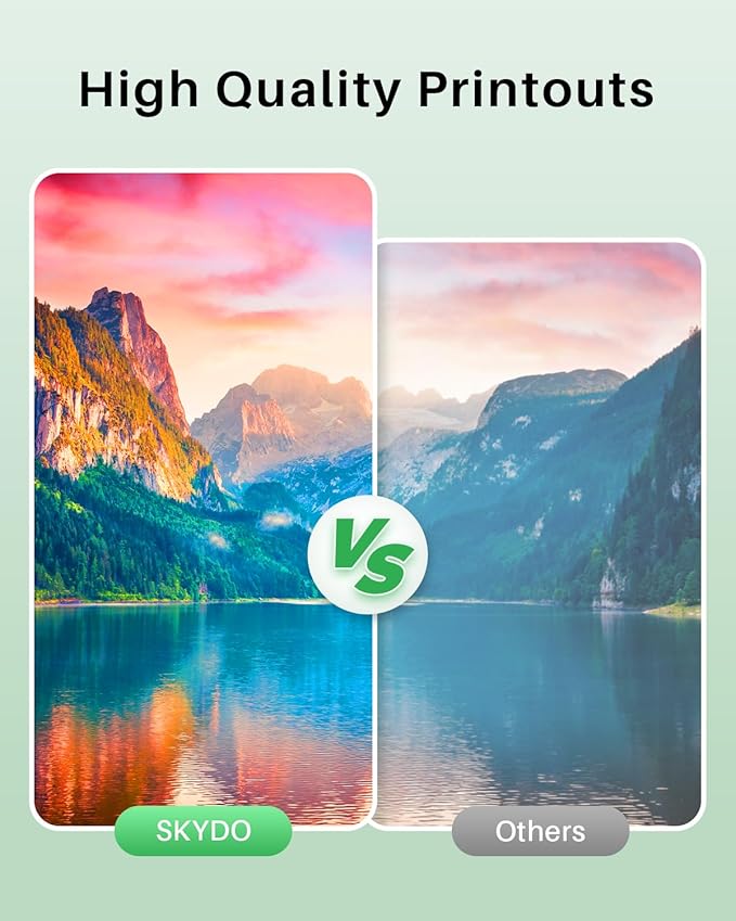 - Skydo High Yield 4 pack color ink Cartridges are characterized by sharp, vivid details, consistent color accuracy, and flawless text reproduction