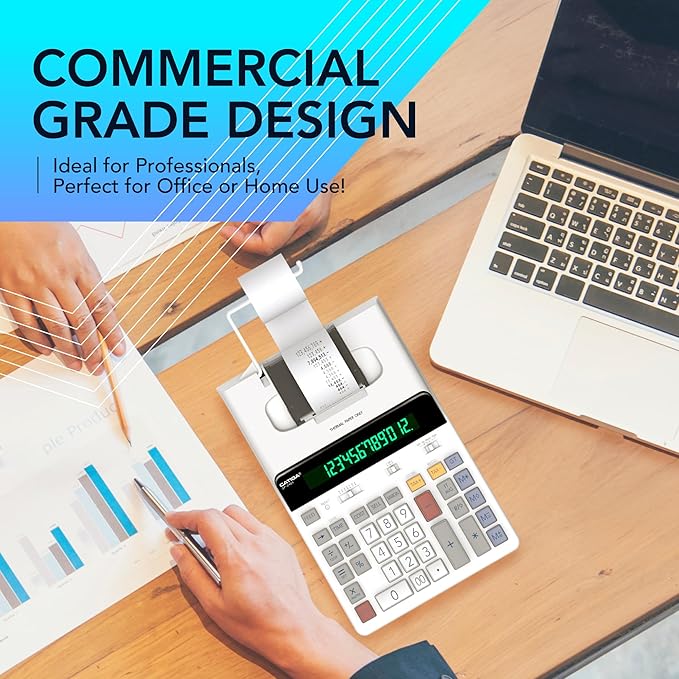 - 【Commercial Fluorescent High-Contrast Display】: Designed with a bright, Extra-Large 12-digit fluorescent screen, this high-contrast display ensures effortless visibility and readability in any lighting condition.