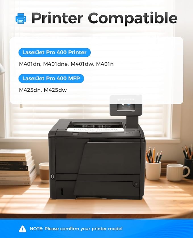 - Compatible Printers: Compatible with HP LaserJet Pro 400 Printer M401dn M401dne M401dw M401n; HP LaserJet Pro 400 MFP M425dn M425dw Printer.