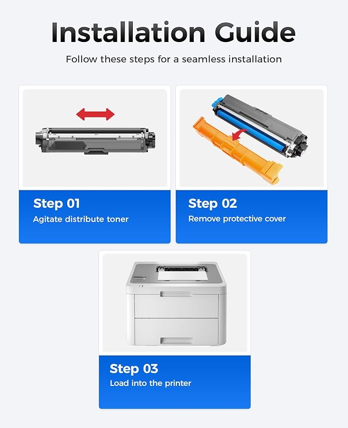 - Package Contents: Total 4 pack TN223 toner cartridges +1x user manual, 1*Black / 1*Cyan / 1*Yellow / 1*Magenta (TN-223).