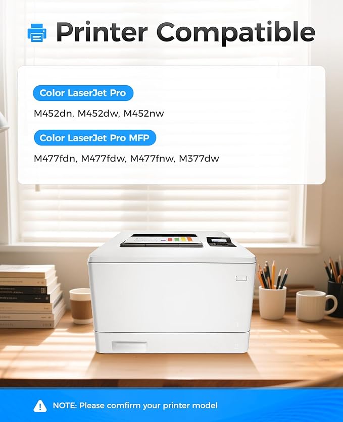 - Compatible Printers: Compatible with HP Color LaserJet Pro M452dn M452dw M452nw Color LaserJet Pro MFP M477fdn M477fdw M477fnw MFP M377dw Series Printer.
