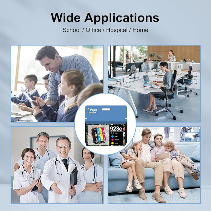 - [Package Content] : 4 Pack 923e ink cartridges. 1x 923e Black, 1x 923e Cyan, 1x 923e Magenta, 1 x 923e Yellow. Ideal for both home and office use.