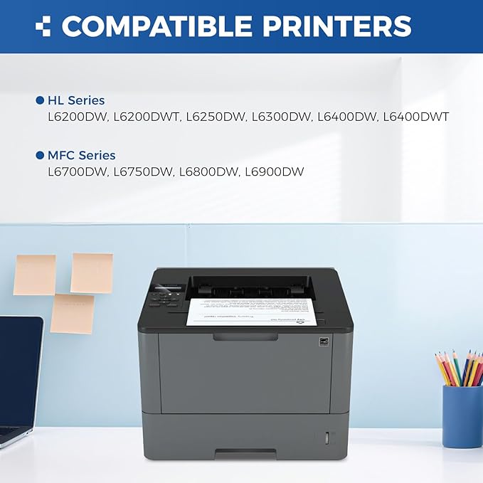 - Compatible Printer: Compatible with Brother HL-L6200DW, HL-L6200DWT, HL-L6250DW, HL-L6300DW, HL-L6400DW, HL-L6400DWT , MFC-L6700DW, MFC-L6750DW, MFC-L6800DW, MFC-L6900DW Printer.(Please check that your printer model matches the printer model of this toner cartridge before placing an order)