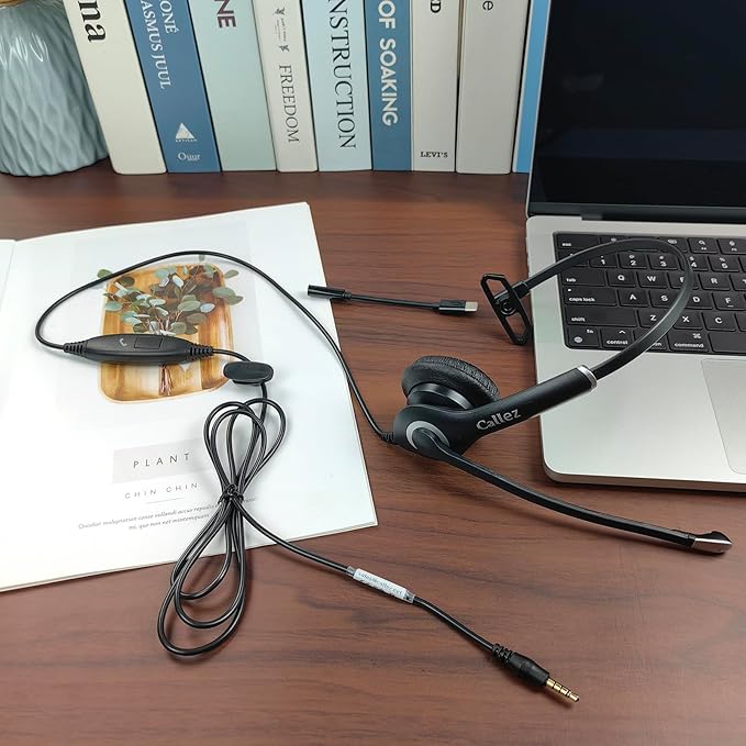 Callez Wired Computer Headset, 3.5mm/USB-C Headset with Mic Noise Cancelling, Cell Phone Headphone for PC Laptop Mac iPhone Samsung Zoom Teams Call Center Home Office Work, in-line Controls