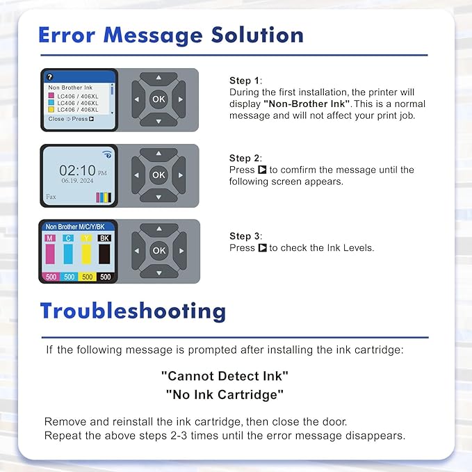 - Product Model: LC406XL LC406 Ink Cartridges for Brother Printer 4 Pack Black Cyan Magenta Yellow