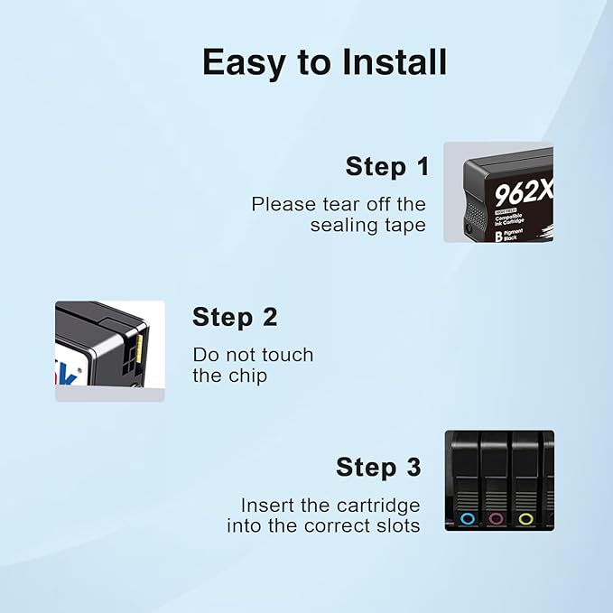 - With smart chips: 962XL ink cartridges combo pack ensure strong compatibility, fast recognition, which offers you smooth and high-efficient printing to meet all your needs