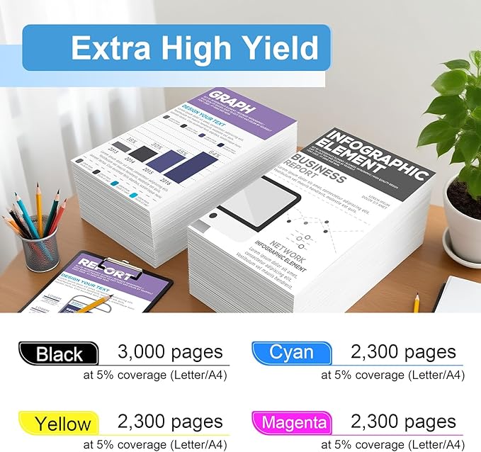 - High Page Yield: the high page yield for 4 pack TN229XL color toner cartridges set is up to 3000 pages per pack(at 5% coverage/Letter A4)