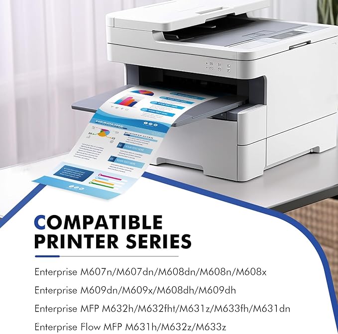 - Compatible for printers: Enterprise M607n M607dn M608n M608dn M607 M608 M609 MFP M631 M632 M633 printer