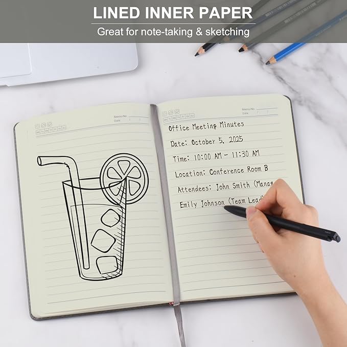 - Vintage Faux Leather Journal: The notebook features soft vegan faux leather cover, protecting your percious ideas and notes.These ruled journal notebook is perfect for taking notes, writing, meeting and etc. It will be a good partner for you at work, school, travel and daily life. The paper are made of FSC-Certified wood