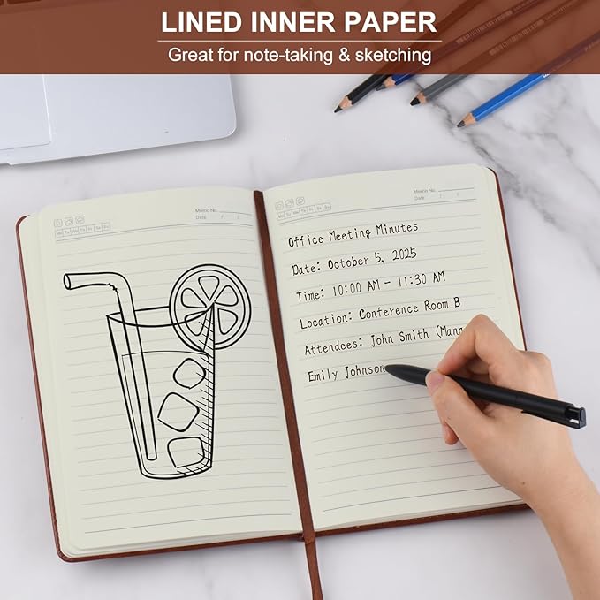 - Vintage Faux Leather Journal: The cover of the leather notebook features soft touch, stylish and timeless. The hardcover protects your percious ideas and notes. These college ruled journal notebook for work is perfect for taking notes, writing, meeting and etc. It will be a good partner for you at work, school, travel and daily life. The paper are made of FSC-Certified wood