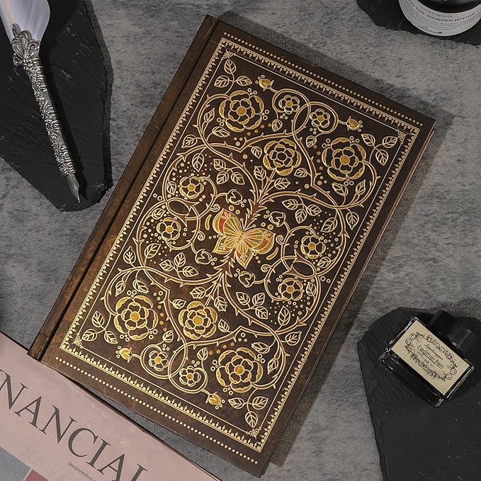 - Aesthetic Cover Journal: The cover is made of high-grade gilt embossing process, with delicate texture and three-dimensional touch, with vintage tone base, presenting low-key luxury aesthetic, which is suitable for daily use or as an exquisite gift for others. The gilt stamping details on the side enhance the overall sophistication and echo the gilt elements on the cover, highlighting the quality of the details and showing unique taste.