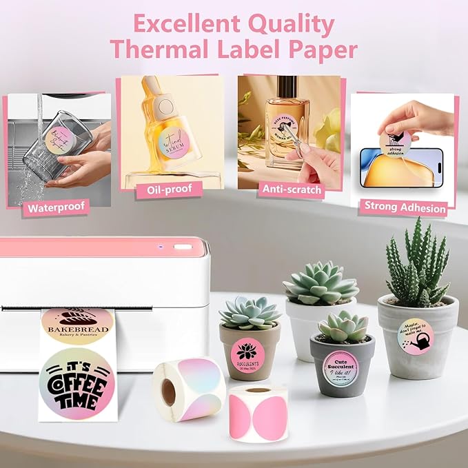 - Fit for Phomemo/MUNBYN Label Printer: 1 all pink & 1 color gradient label paper is suitable for Phomemo 241BT,for MUNBYN 130B /RW402B,for Omezizy D450BT,POLONO,JADENS,IDRPT.Simple installation, just put the paper roll into the printer in the right direction, then adjust the slot according to the label size to fix the label paper,turn on the printer will automatically correct the position of the label, and then connect with APP to print.
