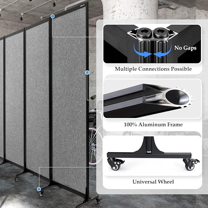 - Portability: The screen is equipped with high-quality universal wheels, you can easily move the partition wall to anywhere. It is also equipped with a brake function, so it can stand firmly where you need it