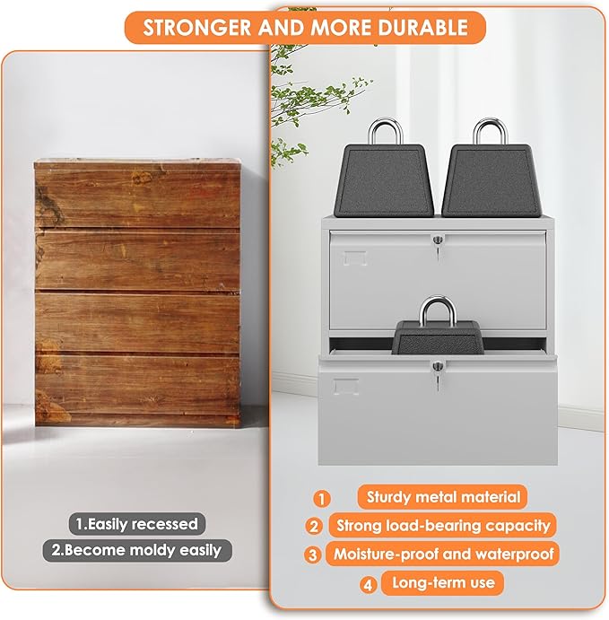 - [All-steel Stable-Rustproof] 2 drawer lateral file cabinet has a reinforced steel frame with a corrosion and stain-resistant powder coat, Rugged and not easily deformed,which is ideal for long-term use.