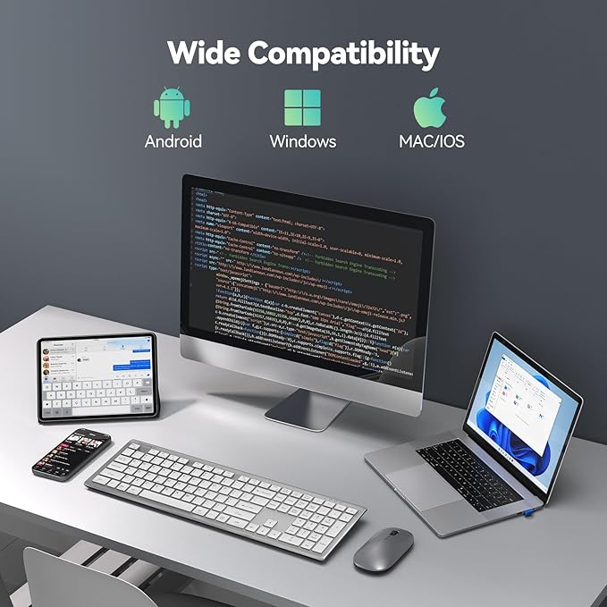 - 【Broad Compatibility】TECKNET slim wireless keyboard compatible with Windows, iOS, macOS, and Android, this wireless bluetooth keyboard is perfect for a wide range of devices including iPads, tablets, smartphones, laptops, desktops, and smart TVs. For devices without Bluetooth, simply use the included USB receiver for a stable connection.