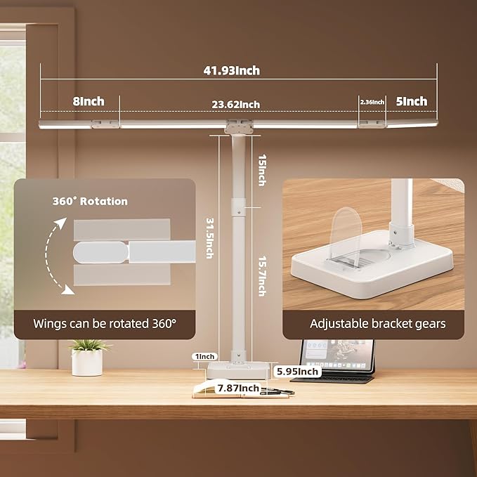 - 5 Joints for Ultimate Flexibility The foldable LED desk lamp is designed with 5 strong damping connectors and 4 super light strips, providing excellent flexibility for horizontal adjustment. Folding light strips to fine tune the lighting angle - raising them to expand the coverage of the entire table, or lowering them to obtain a focused high-intensity beam, is perfect for sewing, crafting, or detailed tasks, making it easy to adjust the direction and position of the lights to fit your workspace.
