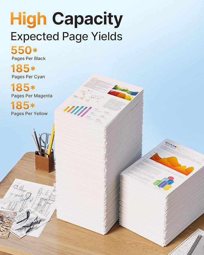 - Page Yiled: 550 Pages per 222XL Black ink cartridge and 185 Pages per 222 Cyan Magenta Yellow Color ink cartridge at 5% coverage.