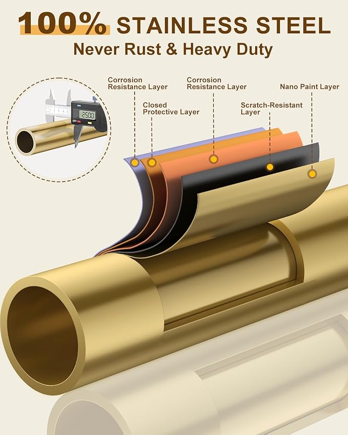 - 100% STAINLESS STEEL STRENGTH - ENJOY 760 LBS & RUST-DEFYING! Boasting an industry-leading 760 lbs weight capacity, 50% stronger than competitors, our NEWEST clothes rack confidently handles your heaviest garments. It features 100% stainless steel design, with even the smallest screws made of the same high-quality material. We've implemented a cutting-edge five-layer coating process, including an extra protective sealant layer, ensuring your rack remains rust-free and resistant to wear and tear.