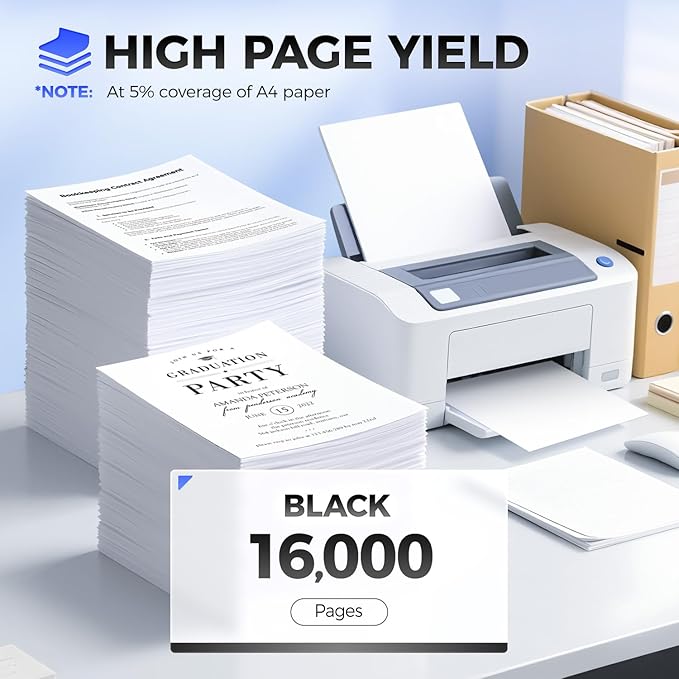 - High Page Yield: Up to 16,000 pages per 24B6186 Black Toner Cartridge,(at 5% coverage of A4 Paper), High Yield Version 24B6186 Toner Cartridge.