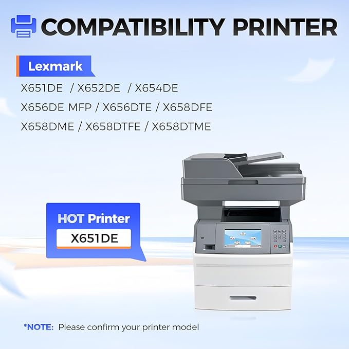 - Compatible Printer: Compatible with Lexmark X651DE X652DE X654DE X656DE MFP X656DTE X658DFE X658DME X658DTFE X658DTME Laser Printers.