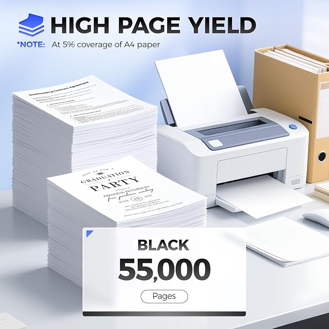 - High Page Yield: Up to 55,000 pages per 58D1U00 Black Toner Cartridge,(at 5% coverage of A4 Paper),Ultra High Yield Version 58D1U00 Toner Cartridge.