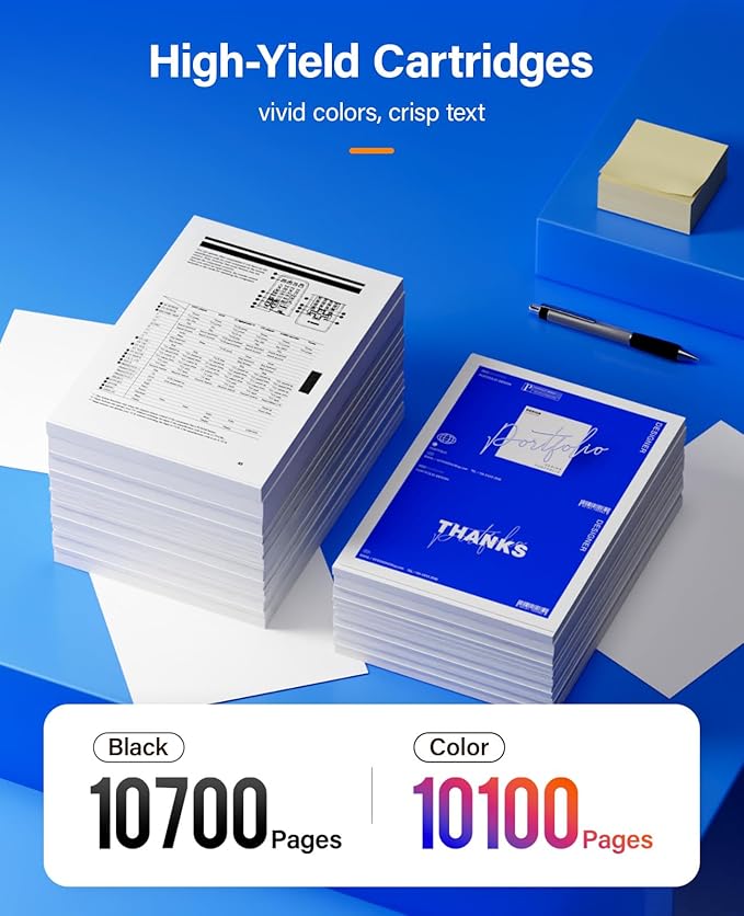 - High Page Yield: 10,700 pages for Black and 10,100 pages for Color toner cartridge (Letter/A4, at 5% coverage)