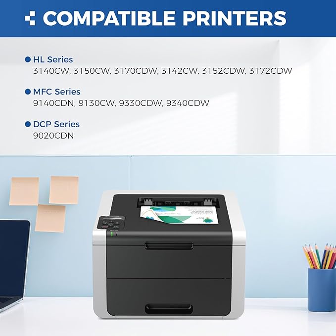 - Printer Compatibility:Compatible for Brother HL-3140CW, HL-3150CW, HL-3170CDW,HL-3142CW, HL-3152CDW, HL-3172CDW,DCP-9020CDN,MFC-9140CDN, MFC-9130CW,MFC-9330CDW, MFC-9340CDW Laser Printer.