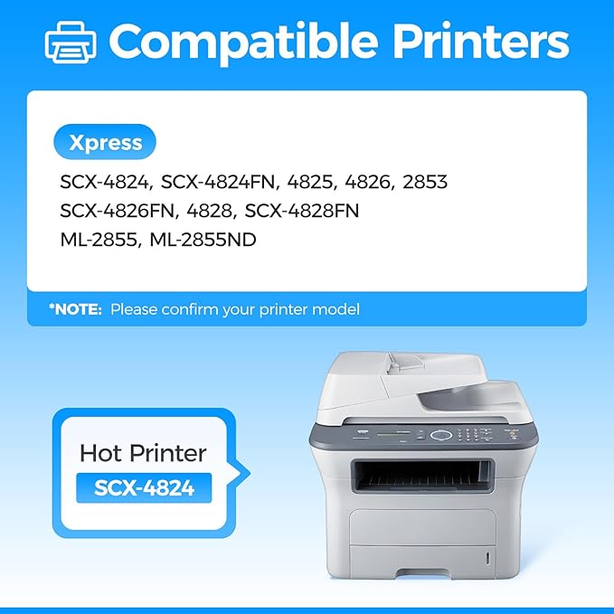 - Compatible Printer: Compatible with Samsung SCX-4824, SCX-4824FN, 4825, 4826, 2853, SCX-4826FN, 4828, SCX-4828FN, ML-2855, ML-2855ND Series Printer.