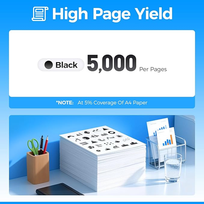 - Yield & Version: 5,000 pages per MLT-D209L Black Toner Cartridge (at 5% Coverage), High Yield Version MLT-D209L toner cartridges.
