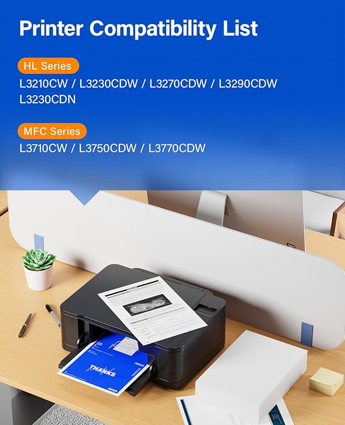- To use with: Compatible for Brother HL-L3210CW, HL-L3230CDW, HL-L3270CDW, HL-L3290CDW, HL-L3230CDN, MFC-L3710CW, MFC-L3750CDW, MFC-L3770CDW Laser Printer.