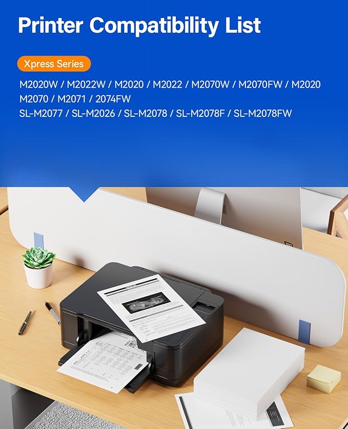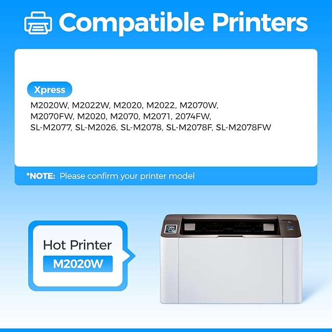 - Compatible Printer: Compatible with Samsung Xpress M2020W M2022W M2020 M2022 M2070W M2070FW M2020 M2070 M2071 2074FW SL-M2077 SL-M2026 SL-M2078 SL-M2078F SL-M2078FW Series Printer.