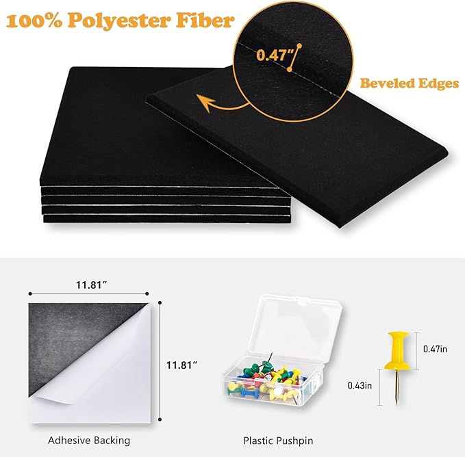 - ADDITIONAL FEATURE - The polyester fiber panels with porous structure help absorb air vibrations in sound waves, reduce sound reflection and echo. Install as a whole wall for higher noise reduction