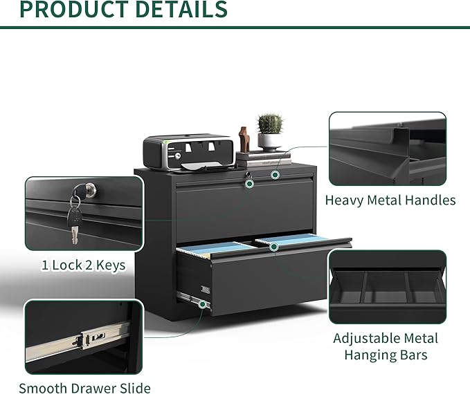 - 【Assemble and Satisfactory Service】: The 2 drawer metal lateral file cabinet requires assembly and comes paper assembly instruction sand videos to help you complete the installation faster. If you have any questions after purchasing, you can contact us directly. We will help you to solve all problems.