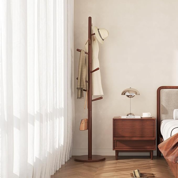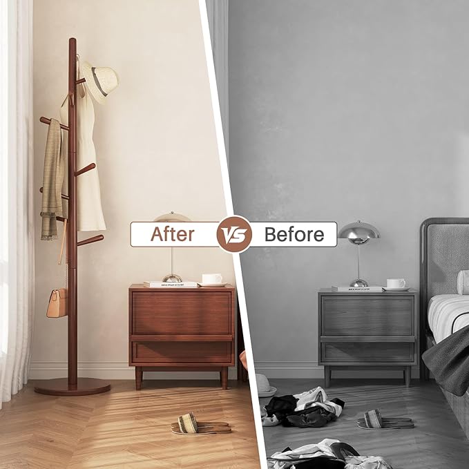 - 【100% SOLID WOOD MATERIAL】Made from premium solid wood, this coat rack freestanding is built to last. Its robust construction resists damage, and it won't warp over time.