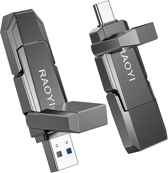 RAOYI 256GB USB C External SSD, 2-in-1 Solid State Drive Up to 450MB/s Dual USB 3.2 + Type-C Thumb Drive Portable SSD Drive for iPhone 15/16, Android, Tablet, PC and PS4