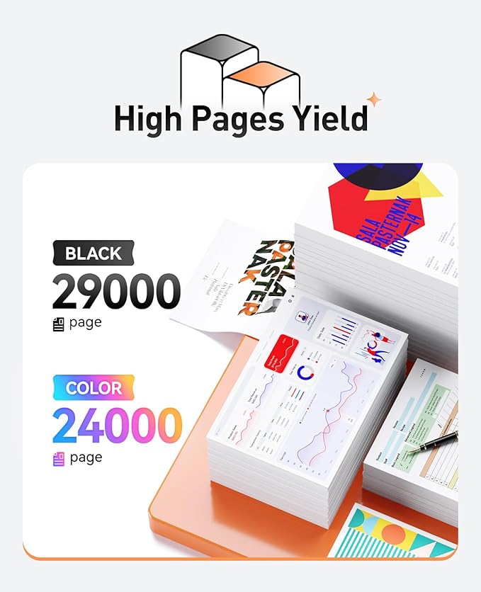 - Yield & Version: 29,000 pages for Black and 24,000 pages Color toner cartridge (A4, 5% Coverage), High Yield Version W9150MC W9151MC W9153MC W9152MC toner cartridges.