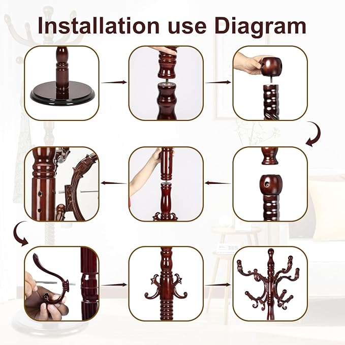 - EFFORTLESS AND QUICK ASSEMBLY: The coat rack comes together effortlessly in mere minutes. Simply tighten the frame poles and hooks with the threaded inserts, and your coat rack is ready to use. No complicated tools required. Save time and effort to enjoy a convenient lifestyle and effortlessly create a stylish home of your own.