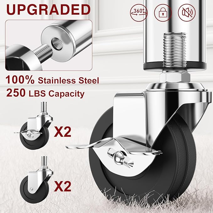 - 100% STAINLESS STEEL & 860 LBS CAPACITY & RUST-FREE! Tired of flimsy clothes racks that snap, wobble and rust? Upgrade to our heavy duty clothing rack! Made from 100% stainless steel, this rolling clothes rack holds up to 860 lbs — far surpassing other garment racks! Hang 500+ bulky garments or stacks of laundry with ease! Rust-resistant closet rack stays like new in humid basements or hot outdoor spaces. No rust, no flakes—just lasting durability. Get yours now and feel the difference!