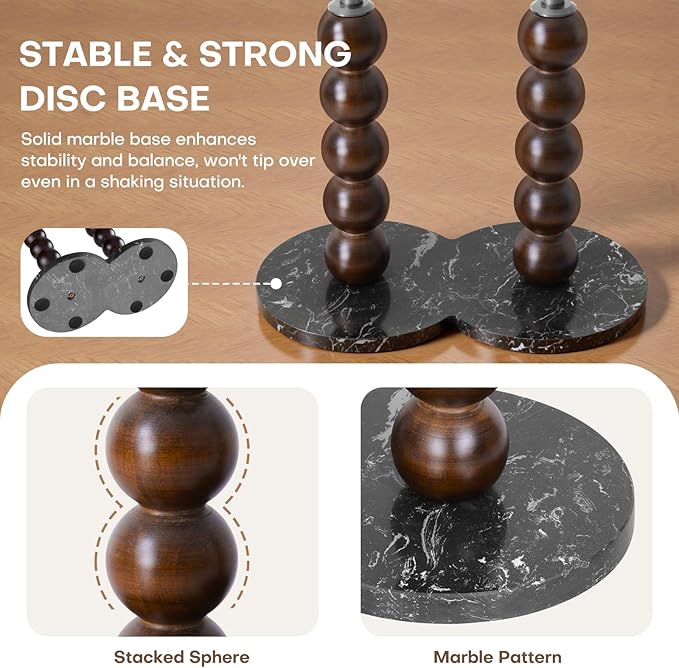 - 【Stable Marble Base for Perfect Stability】The solid marble base offers great balance, ensuring your coat rack stays firm even fully loaded. The compact size (17.7” L × 9.8” W) easily fits into small space, whether in a tiny hallway or a cozy bedroom, this coat rack stands steadily without wobbling or tipping over