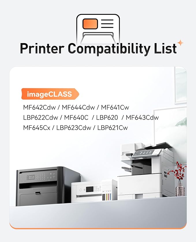 - Compatible Printers: Compatible with Canon imageCLASS MF642Cdw MF644Cdw MF641Cw LBP622Cdw MF640C LBP620 MF643Cdw MF645Cx LBP623Cdw LBP621Cw Series Printers.