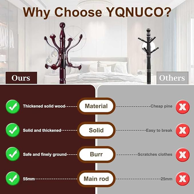- AAA LEVEL BIRCH WOODEN MATERIAL: This coat rack is crafted from high quality solid birch wood, ensuring durability and a sturdy structure capable of holding your clothes and items without wobbling. The freestanding coat rack’s double-thickened, round base offers excellent stability. It’s a reliable choice that brings both steadiness and elegance to your home!